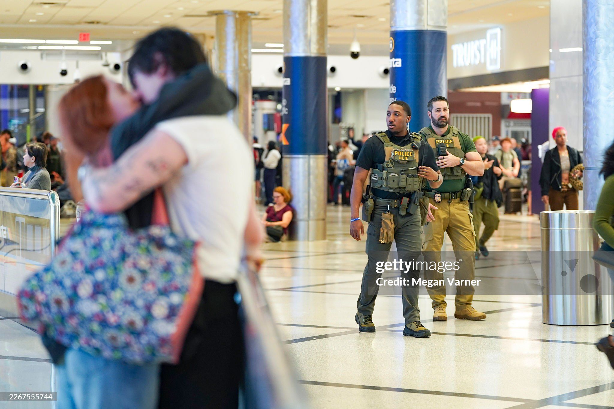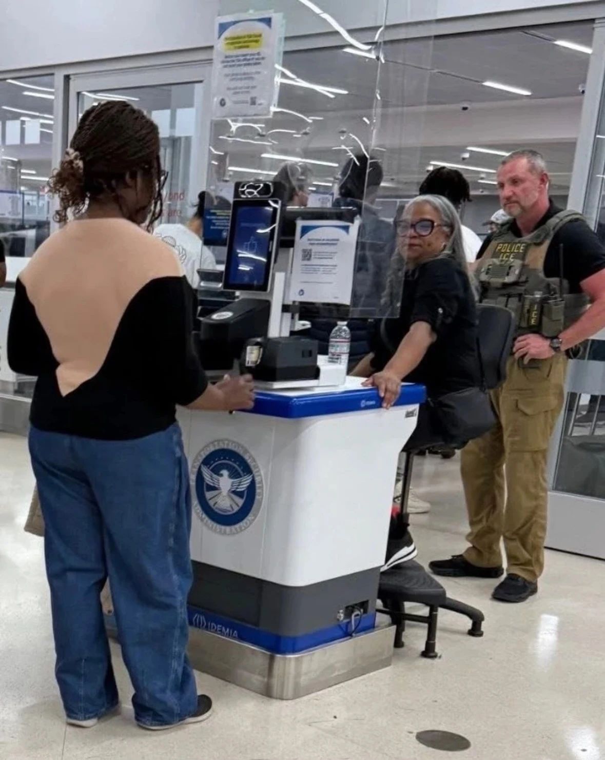 They’re in the mezzanine just watching us. Not doing anything that I can tell besides just having a presence. I didn’t see ICE agents help with anything the entire time! They just stood around chatting it up with each other. No evidence they are doing any of the work of a TSA agent at all. Only seen them pacing and cracking jokes with each other which at least is not assault! They’re literally just walking around in groups of three and four, seemingly without any true purpose.